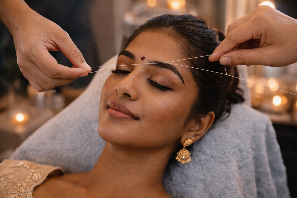 Facials, waxing, threading, and skin care services.
